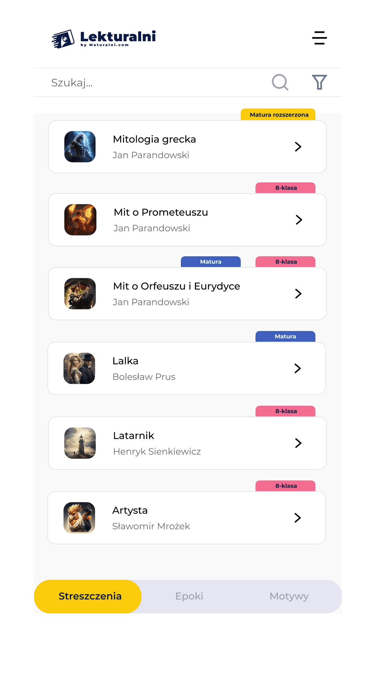 Nasi eksperci streścili i opracowali wszystkie szkolne lektury. Pobierz bezpłatną aplikację i oszczędź setki godzin.